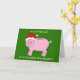 Um desenho de um banco de porcos vestindo um chapéu de Papai Noel, colocado contra um fundo verde escuro e colorido. As palavras "Um presente de Natal a uma neta muito especial" acompanham a imagem.