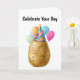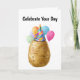Celebrar o dia especial de alguém com este adorável e humorável design de aniversário de batata com um belo pud vestindo uma festa colorida cercada por balões festivos. Perfeito para amigos, família ou qualquer pessoa que aprecie humor peculiar e desejos de aniversário cheios de trocadilhos. Este charmoso personagem de batata traz sorrisos e risos a qualquer celebração de aniversário com seu tema lúdico de "batateira de sofá". conteúdo generativo.