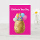 Celebrar o dia especial de alguém com este adorável e humorável design de aniversário de batata com um belo pud vestindo uma festa colorida cercada por balões festivos. Perfeito para amigos, família ou qualquer pessoa que aprecie humor peculiar e desejos de aniversário cheios de trocadilhos. Este charmoso personagem de batata traz sorrisos e risos a qualquer celebração de aniversário com seu tema lúdico de "batateira de sofá". conteúdo generativo.