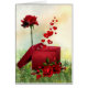Caixa vermelha de presentes, rosa vermelha, corações vermelhos saindo da caixa de presentes enviando um cartão de saudação de amor. Fundo adquirido a partir de tubos de canalização para utilização