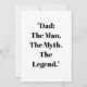 “Pai: O Homem. O Mito. A Lenda.” é o presente perfeito para o Dia dos Pais, aniversários ou qualquer dia que você queira homenagear um pai incrível. Ideal para camisetas, canecas e cartões de saudação
