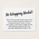 Se você estiver hospedando um chá de exibição sem presentes para uma noiva para ser, este cartão simples e divertido pode ser a escolha para você. Usando uma fonte elegante de script, adicionei primeiro um cabeçalho que dizia "No Wrapping Neanced!" na frente, e "To" e "From" para o lado da etiqueta de presente. O campo de modelo foi criado para oferecer instruções aos convidados que não embrulhassem o seu presente; por favor, sintam-se livres para alterar a redação da forma que quiserem. Há muitos alternativos populares neste texto, se você quiser uma mudança. Todas as fontes e cores podem ser modificadas conforme você vê o ajustado. // Concebida por Melody Watson para Paper Muserie.