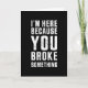 Este é o presente ideal para programadores com senso de humor. "Estou aqui porque você quebrou alguma coisa" é afirmado no topo como uma parte engraçada da vida dos funcionários de suporte de TI ou dos dispositivos de software.