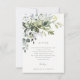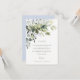 Este design apresenta florais azuis empoeirados e folhas de eucalipto em tons de verde.