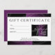 cartão-presente de salão de cabelo elegante preto e roxo