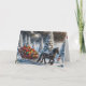 Uma paisagem nevada apresenta um cavalo puxando um trenó cheio de presentes coloridos através de uma floresta de árvores cobertas de neve. O texto pode ser alterado.