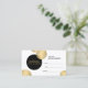 Coordena-se com o Modelo de cartão de negócios Negro e Dourado Glamor e Beleza até 1201AM. Um motivo de ouro metálico falso e círculos pretos cria um design atraente neste cartão de compromisso de salão modelo. © 1201AM CREATIVE