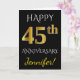 Cartão Preto, Falso Ouro 45º Aniversário de Casamento + N