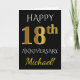 Cartão Preto, Faux Dourado 18º Aniversário de Casamento +