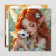 Cartão Pretty Red Haired Fairy with Dragon