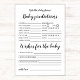 Atividade do chá de fraldas - predições e desejos para o bebê. Essa atividade de chá de fraldas apresenta design preto-e-branco, neutro em gênero e minimalista, com roteiro de caligrafia moderno. Adicione facilmente sua personalização ou edite na ferramenta design para mais personalização.