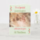 Cartão de saudação de fotos de Natal de 1rua. Para uma neta especial. Com amor no seu primeiro Natal. Você é fofo demais para a lista travessa. Projetado em coral e verde com uma foto.