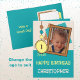Cartão de aniversário para uma primeira / 1rua / aniversário. 1 cartão de boas-vindas. Adicione uma foto, um nome e uma mensagem. Tenha um excelente dia. Turquesa, marrom e amarelo.