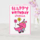 Cartão Primeiro aniversario da neta T-Rex Dino, cor-de-ro