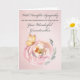 Este cartão de compaixão para o primeiro aniversário da perda de uma avó apresenta uma delicada borboleta descansando sobre uma rosa rosa-rosa. As cores suaves e as imagens suaves suscitam sentimentos de calor e memória. Ela simboliza o amor duradouro e as memórias queridas de uma avó amada. O cartão oferece uma mensagem reconfortante para honrar sua memória e o lugar especial que ela ocupa no coração dos que a amavam.