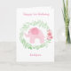 Um louro de aquarela verde e flores cor-de-rosa com um elefante cor-de-água cor-de-rosa representado na frente desta carta personalizada de primeiro aniversario. Você será capaz de personalizar facilmente a frente com seu nome e dentro de mensagem de aniversário. Isso faria uma boa manutenção para a aniversariante.