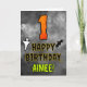 A frente deste design de cartões de saudação de aniversário do Dia das Bruxas assustador e assustador apresenta um grande número "1", juntamente com a mensagem "FELIZ ANIVERSÁRIO", e um nome editável. Há também representações de um morcego e de um fantasma na frente. O dentro apresenta uma mensagem de saudação de aniversário personalizada, ou talvez possa ser apagado e deixado o vazio se uma mensagem for escrita manualmente. Um cartão de aniversário personalizado como este pode ser uma maneira divertida de enviar desejos de aniversário a alguém que comemora seu primeiro aniversário e que também foi nascer no Halloween (31 de outubro). [~Z0000547]