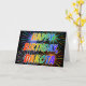 Este design de cartões de saudação de aniversário multicoloridos e divertidos apresenta a mensagem "HAPPY BIRTHDAY" e o nome comum "DAKOTA" com as letras que têm um espectro de arco-íris colorido como um padrão de colorir gradiente. O plano de fundo da frente também apresenta um padrão inspirado em fogos de artifício coloridos. O dentro apresenta uma mensagem de saudação personalizável, ou talvez possa ser apagado e deixado o vazio se uma mensagem for escrita manualmente. Um cartão de saudação como este pode ser uma maneira divertida de reconhecer o aniversário de alguém chamado Dakota. [~Z0000350]