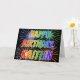 Este design de cartões de saudação de aniversário multicolorido e divertido apresenta a mensagem "HAPPY BIRTHDAY", e o nome comum "KAITLIN", com as letras que têm um espectro colorido do arco-íris como um padrão de colorir gradiente. O fundo da frente também apresenta um padrão colorido inspirado pela aparência de fogos de artifício comemorativos em explosão. O dentro apresenta uma mensagem de saudação personalizável, ou talvez possa ser apagado e deixado o vazio se uma mensagem for escrita manualmente. Um cartão de saudação como este pode ser uma maneira divertida de celebrar o aniversário de alguém chamado Kaitlin. [~Z0000350]