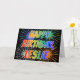Este vibrante, multicolorido e divertido design de saudação de aniversário apresenta a mensagem "HAPPY BIRTHDAY" e o nome comum "LESLIE" com as letras que têm um espectro colorido do arco-íris como um padrão de colorir gradiente. O fundo da frente também apresenta um padrão colorido inspirado pela aparência de fogos de artifício comemorativos em explosão. O dentro apresenta uma mensagem de saudação personalizável, ou talvez possa ser apagado e deixado o vazio se uma mensagem for escrita manualmente. Um cartão de saudação como este pode ser uma maneira divertida de celebrar o aniversário de alguém chamado Leslie. [~Z0000350]