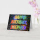 Este vibrante, multicolorido e divertido design de saudação de aniversário apresenta a mensagem "HAPPY BIRTHDAY" e o nome comum "STEPHEN" com as letras que têm um espectro colorido do arco-íris como um padrão de colorir gradiente. O fundo da frente também apresenta um padrão colorido inspirado pela aparência de fogos de artifício comemorativos em explosão. O dentro apresenta uma mensagem de saudação personalizada, ou talvez possa ser apagado e deixado o vazio se uma mensagem for escrita manualmente. Um cartão de saudação como este pode ser uma maneira divertida de celebrar o aniversário de alguém chamado Stephen. [~Z0000350]