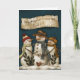 O cartão primitivo do Natal com um boneco de neve que reliaxing no céu nocturno com a neve lasca-se caindo.