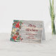 Feliz Natal para o primo e seu cartão de família com água doce verde e poinsettias com padrão de madeira de safra.