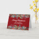 Feliz Natal para a prima e seu cartão de família com cor d'água rusticidade verde e fundo vermelho.