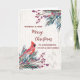Feliz Natal para o primo e seu cartão de família com água doce verde e padrão de madeira cardeal e vintage.