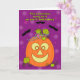 Criar uma lembrança para um bebé especial com este cartão adorável da jaque-o-lanterna da princesa da abóbora para seu primeiro Dia das Bruxas. O fundo roxo bonito oferece um contraste maravilhoso à abóbora alaranjada, aos bastões pretos e ao texto verde-claro do cobrir. Adicione seu nome, data e sua mensagem especial para um cartão que seja estimado para os próximos anos! A arte/design e o verso originais são cortiça da moeda de um centavo do ©.