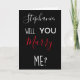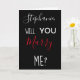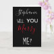 Uma ótima maneira de fazer o pedido! Divertido texto "Você casa comigo?" (frente), e coração "Eu te amo" dentro. Personalize com o nome dela e adicione a data no verso.