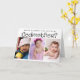 Um cartão de proposta madrinha de colagem fotográfica moderna, com o roteiro "serás a minha madrinha" em letras de tendências, 3 fotos e dentro de mensagens.