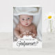"Você será meu padrinho?" elegante cartão de proposta dos padrinhos. Design recursos de na moda branco de moldura ornamental em cima de sua foto favorita do bebê e mensagem para o futuro dentro dos padrinhos.