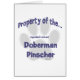 Todos os bons donos de cães sabem que são propriedade do seu cão. Os donos do Doberman Pinscher vestirão: Propriedade do meu (podre estragado) Doberman Pinscher com orgulho numa t-shirt, botão, caneca, ímã, chaveiro e muito mais.