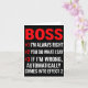 Cartão Proud Boss Always Right Office Quote For Managers
