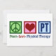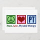 Cartões de Terapia Física do Peace Love para seu fisioterapeuta favorito enviar aos clientes para o feriado de Natal. Um sinal de paz, coração, e as letras PT fazem um presente excelente para um fisioterapeuta em sua prática ou escritório.