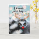 Um bom Natal, um cartão de boas-vindas em papel com uma fotografia de um lêmur cortado em anel enrolado na cauda e vestindo nariz vermelho e galhadas de renas decoradas. Cartão de saudação temático da vida selvagem. Lemur só diz... ou Deixe-me dizer... trocadilho escrito no cobrir. Personalize a mensagem de feriado interno, conforme desejado. Arte, imagem e direitos de autor versos © Shoaff Ballanger Studios, 2024.