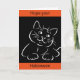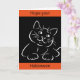 O desenho de uma linhagem bonita de um gato com a mensagem "Esperem o vosso Halloween" é apresentado na frente deste cartão de saudação. O dentro diz: "é Puro!" Cartão de saudação não assustador para enviar a uma criança ou mesmo a um adulto.