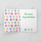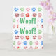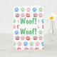 Puta! Puta! Design de impressão de pata colorida com uma mensagem divertida para o amante do cachorro. O texto da dentro diz: "Feliz Aniversário! Você pode personalizar isso com sua própria mensagem especial. Melhor ainda, faça dele um cartão perfeito de "do cão"! Design ©Christine Greenspan. Padrão de impressão de pata licenciado.