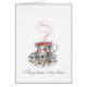 Sempre é hora do chá, com uma xícara de chá ( © Mira e Georgiana). Uma citação de chá e design para aqueles que usam essa bebida como combustível e inspiração, e que a bebem em momentos de relaxamento, assim como momentos de concentração. Espero que você use este cartão e o cartão de boas-vindas para se encontrar com amigos por uma boa xícara de chá. Avise aos seus amigos que eles podem passar na sua casa a qualquer momento para um chat e um cuppa, ou que você está ansioso para se encontrar na cidade em uma casa de chá.