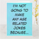 Eu não vou fazer piadas relacionadas à idade porque eu realmente me sinto mal sobre a sua idade. Um cartão de aniversário engraçado para fazer o aniversariante ou garota rir. Perfeito para amigos ou familiares. Você pode alterar o texto, a imagem ou o plano de fundo do cartão.