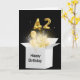 Balões Dourados e feixes de luz cintilantes brilham em uma caixa branca sobre fundo preto no 42º aniversário