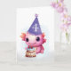 Torne seu quarto aniversário memorável com esta carta divertida estrelando um axolotl cor-de-rosa numa festa roxa marcada com um grande número 4. O bolo de aquarela colorido e o fundo pastel suave criam um cenário alegre. A mensagem dentro celebra sua personalidade crescente e risos intermináveis. Ideal para quem quer trazer um charme extra para seu dia especial.