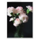 Lindas flores brancas do cravo com bordas cor-de-rosa sobre fundo preto.