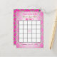 Uma atividade do divertimento para todo o evento - convide convidados a jogar o bingo do chá de panela. Este cartão caracteriza um fundo cor-de-rosa bonito do quatrefoil. Projetado por Amelia Carrie e vendido com zazzle.com/GlitterInvitations e GlitterInvitations.com