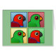 O papagaio bonito de Eclectus é incomum na família do papagaio para sua diferença extrema da cor entre homens e fêmeas. Os homens da espécie são verde-claro, quando as fêmeas forem vermelho-dirigidas e azuis a roxo-breasted. Este design original de Birdorable caracteriza papagaios de Eclectus em um estilo do pop art. Cada pássaro é suportado por um quadrado colorido diferente. Este design é grande para qualquer um que ama esta espécie bonita do papagaio, o papagaio de Eclectus! Você pode personalizar este presente! Mova o design ao redor, mude a cor do fundo ou o estilo, adiciona o texto ou as imagens -- faça-lhe seus próprios!