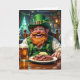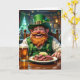 Um cartão de Dia de São Patrício bonito com um Leprechaun em um bar de cerveja bebendo e comendo carne de milho e repolho. Dentro da placa pode ser personalizada.
