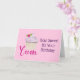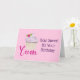 Um cartão de saudação de aniversário com um dentro de mensagem. Projetado com um cupcake cor-de-rosa brilhante com espirais riscadas de glacé rosa com suporte de cupcake amarelo. Uma framboesa com caule e folhas no topo. Sonho e delicioso. O texto diz Yum em uma fonte de tendência de rico. Colocado num pano de fundo cor-de-rosa pastel. Um dentro de mensagem que a placa pode ser personalizada ou deixada como está.