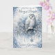 Este cartão de Natal elegante apresenta uma bela ilustração de uma coruja-da-neve empoleirada em um galho invernal gelado, cercada por flocos de neve delicados, ornamentos geados e detalhes cintilantes de inverno. Tons suaves de azul e prata criam uma atmosfera serena de feriado, perfeitamente complementada pelas mensagens atemporais “Que seus dias sejam alegres e radiantes” e “Saudações de Fim de Ano”. Ideal para enviar votos calorosos com um toque de magia invernal, este cartão é perfeito para amantes da natureza e aqueles que apreciam arte refinada de Natal.