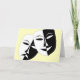Uma máscara de comédia e tragédia decora a frente deste cartão de saudação enquanto o dentro lê, "Quebre uma perna", a maneira tradicional de apagar um ator, "Boa sorte"